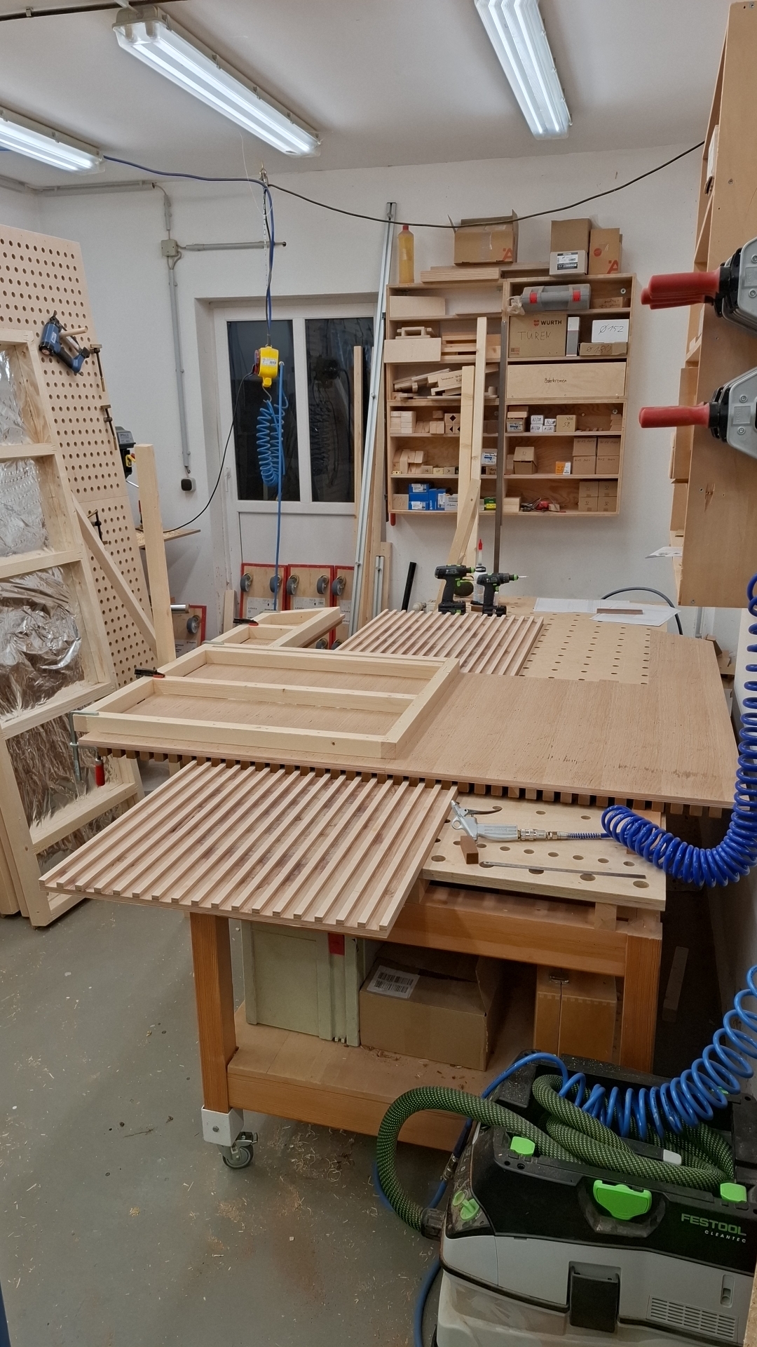 Die Fertigung erfolgt in unserer eigenen Werkstatt. Durch die Vorfertigung gewährleisten wir eine gleichbleibend hohe Qualität sowie eine saubere und effiziente Montage vor Ort.